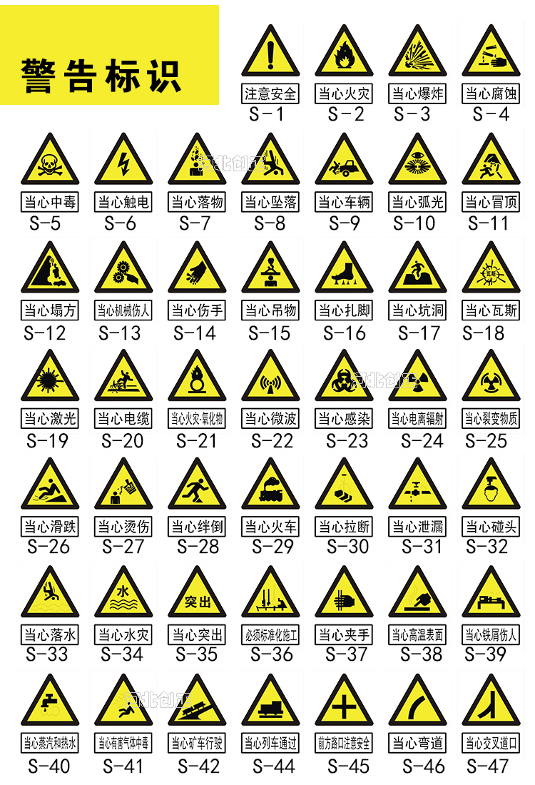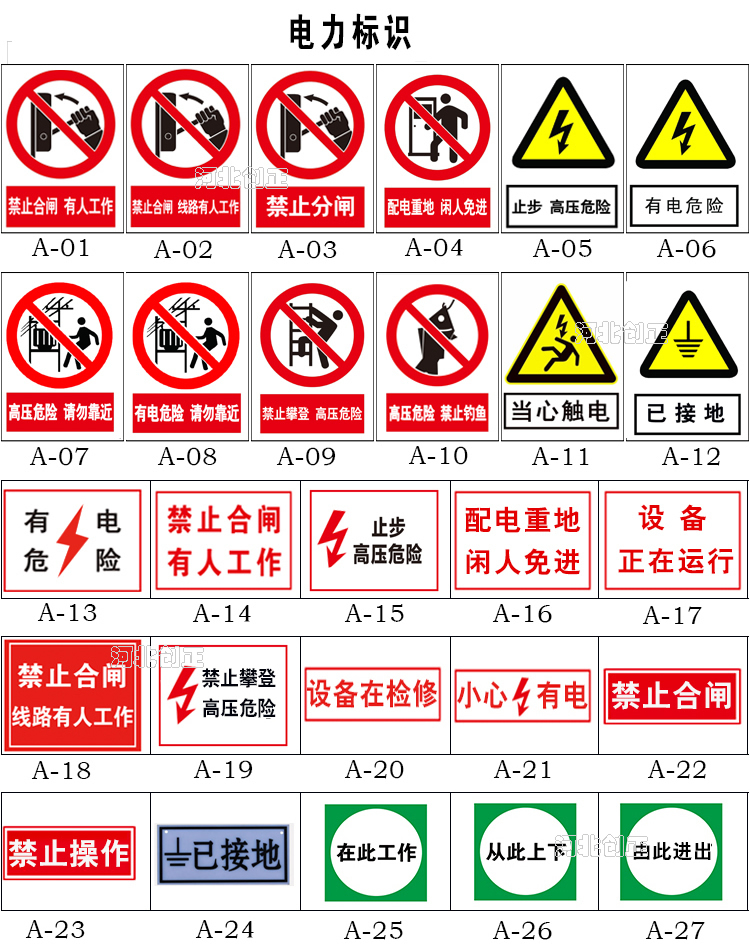 2、產品內容:禁止、指令、提示、線路相位、消防、通信、交通等。
