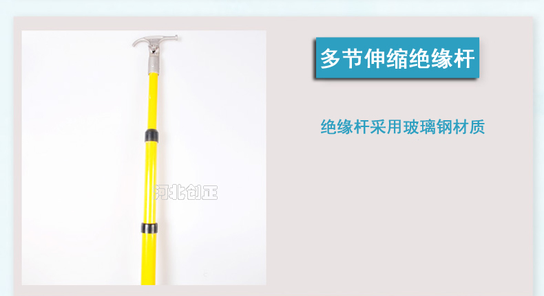 4、產品特點:重量輕,易攜帶,使用方便,可根據使用空間伸縮定位長度,克服了接扣式拉閘桿因長度固定而使用不便的缺點。